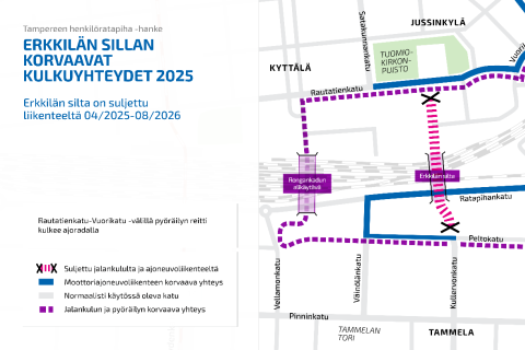 Muutoksia Erkkilän sillan ympäristössä liikkumiseen 7.4. alkaen