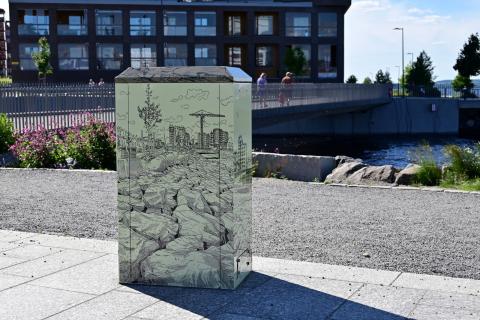 Ranta-Tampellan sähkökaappien teippauksissa näkyy alueen rakentuminen