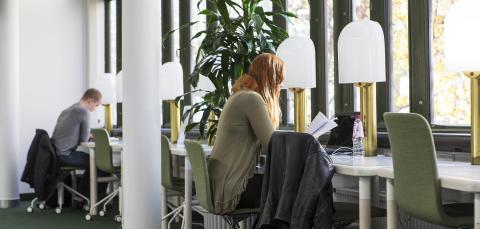 The quiet study and reading area Sora is located near the library information desk and is open during library opening hours. The room has six workstations, each equipped with a desk and an office chair. Two of the desks are height-adjustable. The study seats cannot be reserved in advance. The space is freely available for use without booking.