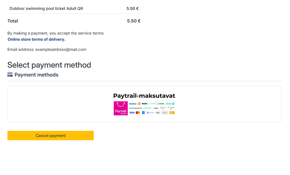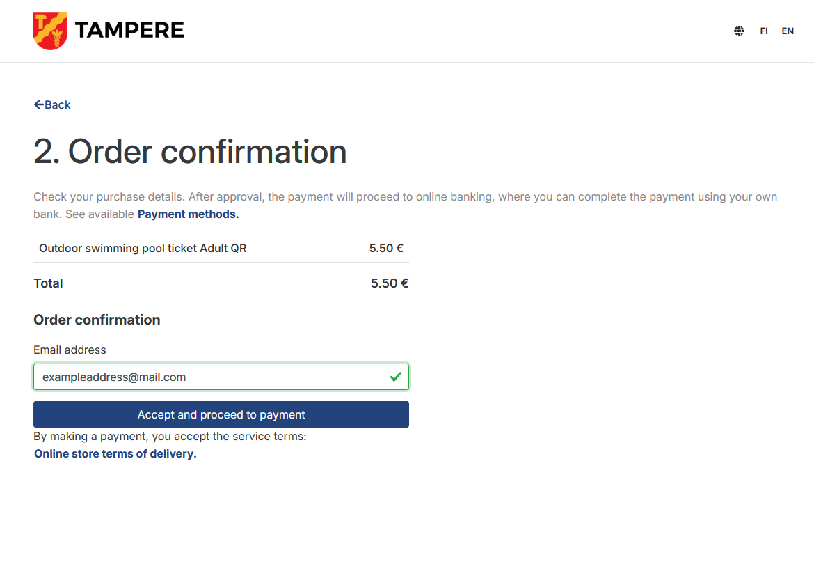 - Confirm your order by entering your email address. Please check again that your email address is correct and that you have a valid, working email address. Read the terms and conditions of the online shop. Accept and proceed to payment.
