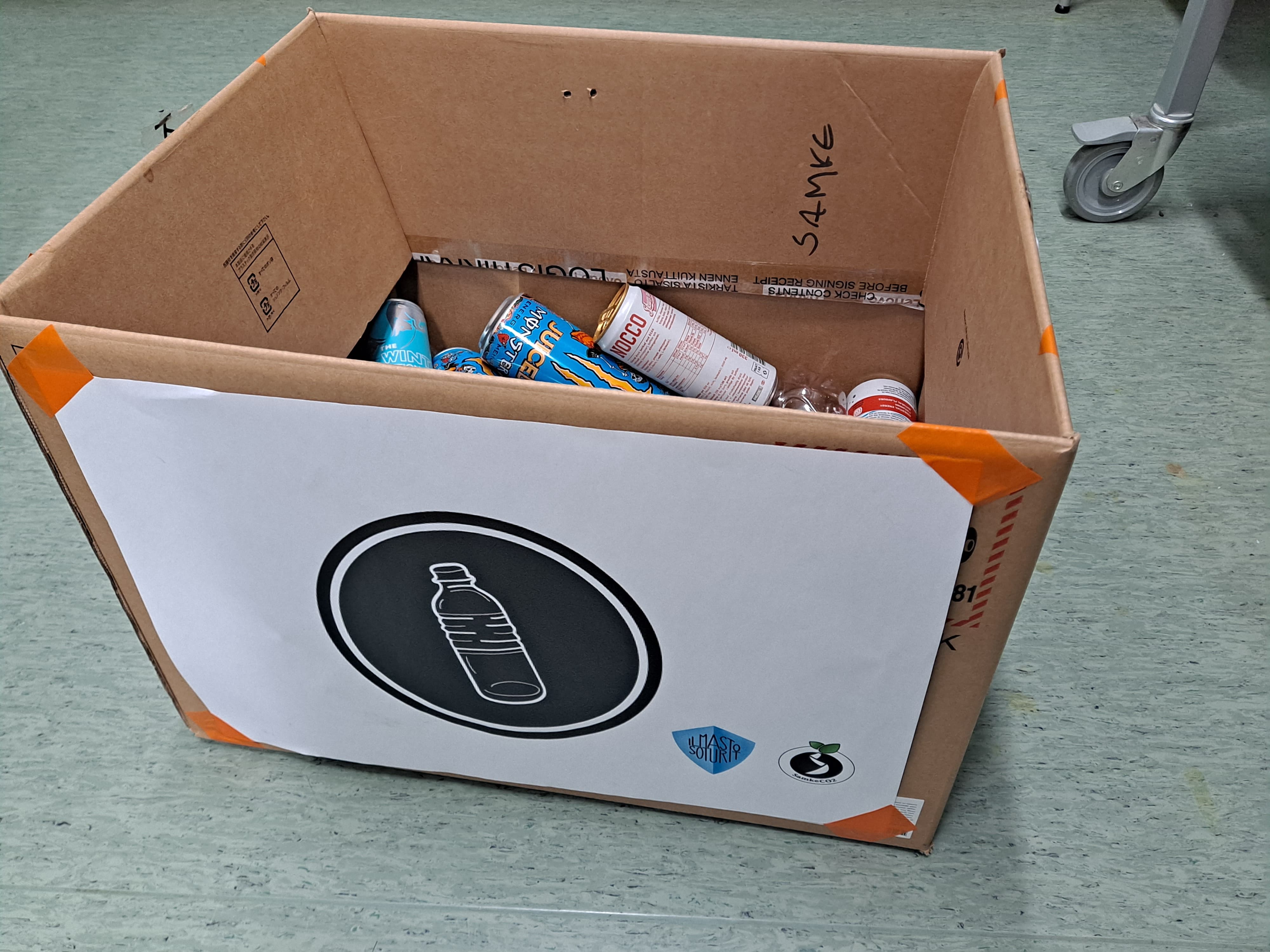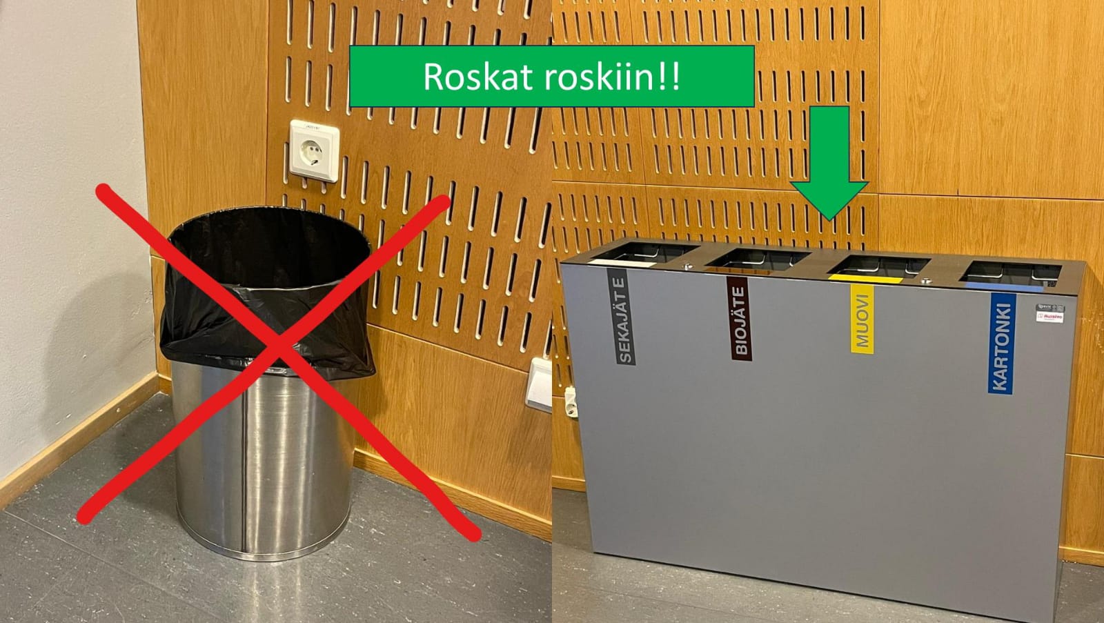 • Kierrätysastiat koulun käytäville