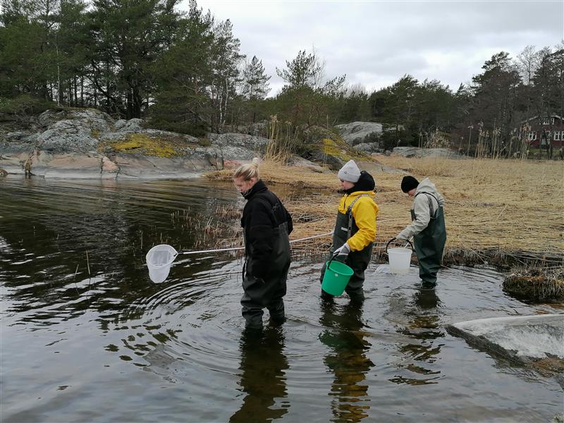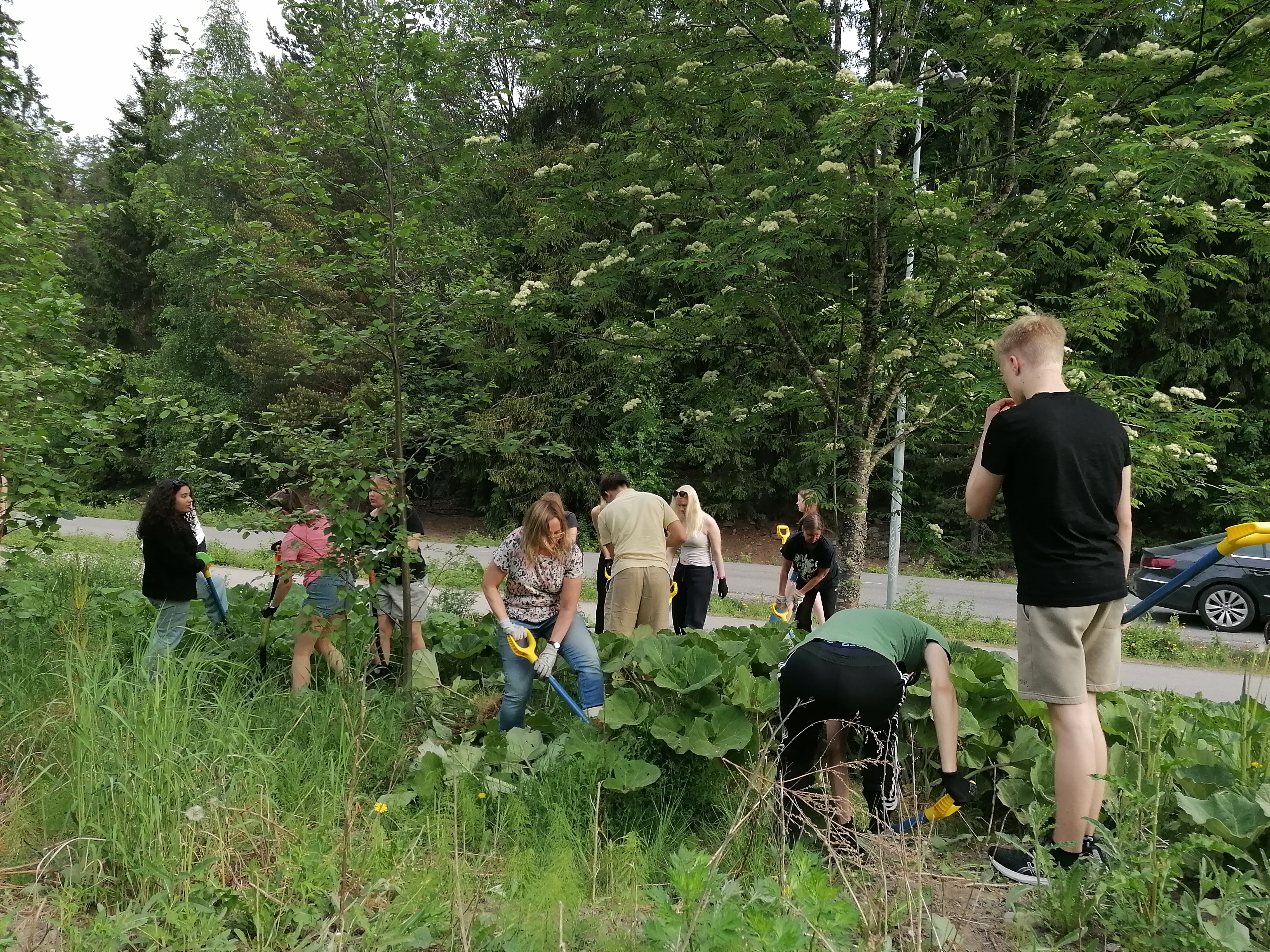 opiskelijoita kitkemässä vieraslajeja