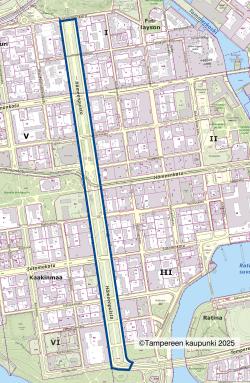 Suunnittelualue sijaitsee aivan kaupungin keskustassa ulottuen Finlaysonin (I), Tammerkosken (II) ja Nalkalan (III) kaupunginosiin.
