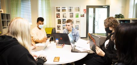 Kumpikin puoli on lukiolaisten käytettävissä. Aineiston lainaus ja palautus tapahtuu Tredun puolella.